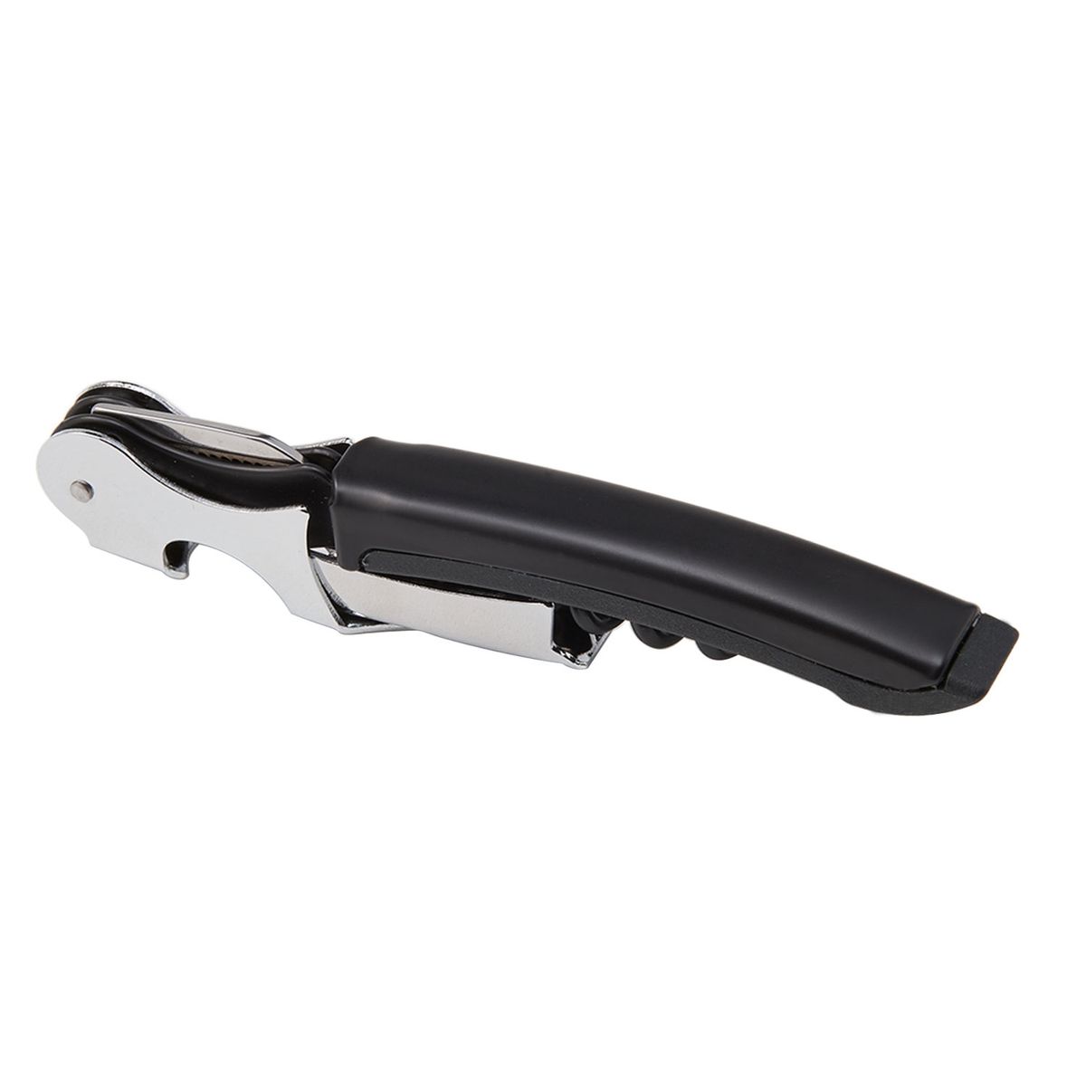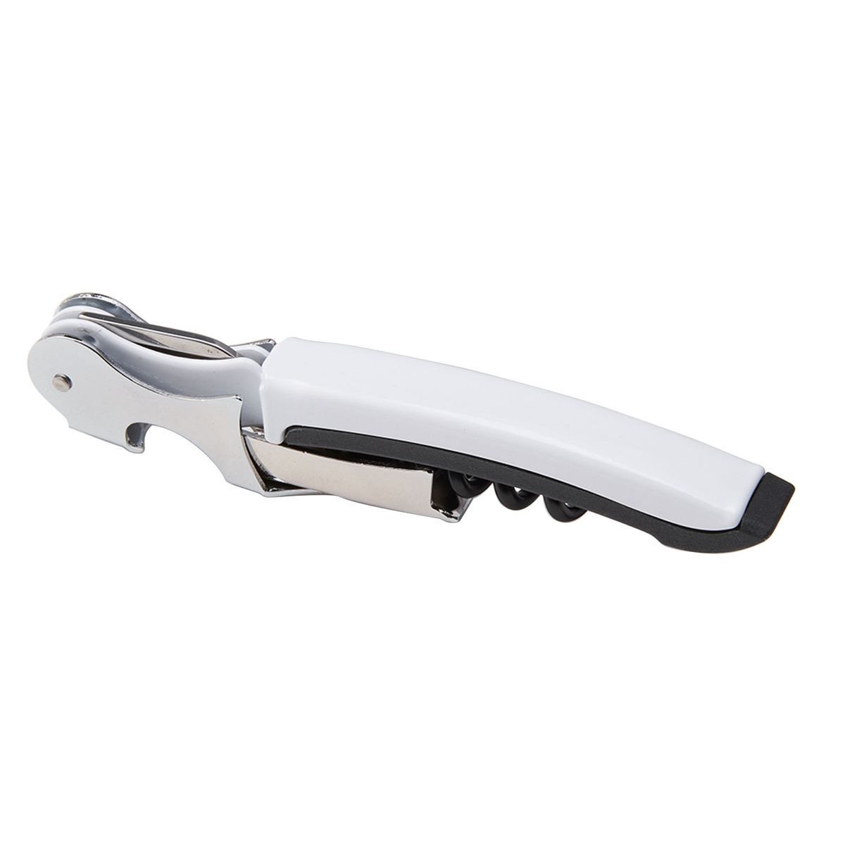 Uncork every celebration with this sleek two-tone matte finish wine opener, designed for effortless use and refined style. Featuring stainless steel inserts, a black non-stick coated corkscrew, and a double hinge lever, it opens bottles with smooth precision. The built-in serrated foil cutter ensures quick prep, making it ideal for bars, homes, parties, and weddings. Add your company logo for a sophisticated promotional touch that stands out on any occasion. Available in the USA.